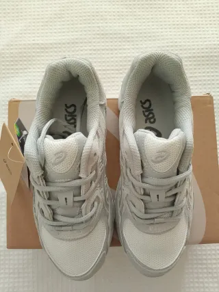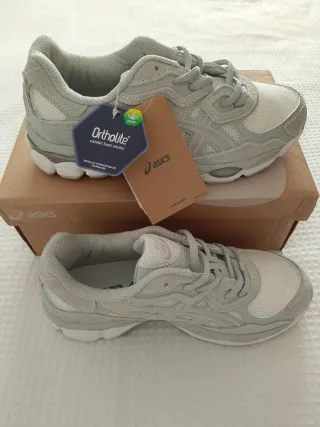 Zapatillas deportivas Asics Gel NYC en tonos grises y blancos. Perfectas para el día a día. - Diseño moderno y cómodo. - Suela con tecnología OrthoLite para mayor confort. - Materiales transpirables.