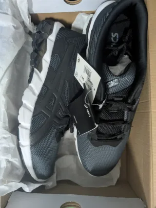 Zapatillas deportivas Asics en tonos negro y gris. - Diseño moderno y deportivo. - Materiales transpirables para mayor comodidad.