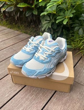 Zapatillas ASICS Gel-NYC en tonos crema y azul ártico. - Diseño moderno y cómodo. - Parte superior de malla transpirable. - Detalles de gamuza. - Suela con tecnología GEL para amortiguación.