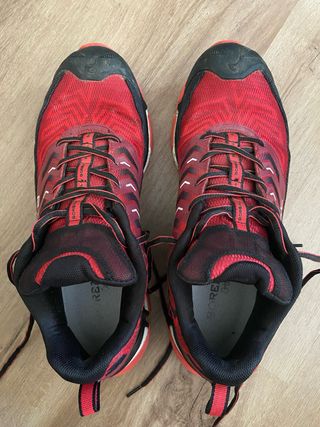 Zapatillas de trail running Boreal Aligator en color rojo y negro. Diseñadas para ofrecer un buen agarre y protección en terrenos irregulares.