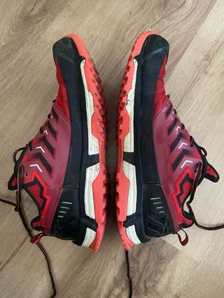 Zapatillas de trail running en muy buen estado, listas para tu próxima aventura. - Diseño moderno y funcional. - Suela con buen agarre para terrenos irregulares. - Materiales transpirables para mayor comodidad.