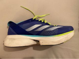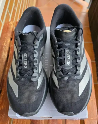 Se venden zapatillas de correr Adidas Adios Pro 3 con placa de carbono talla 41 1/3 por quedarse pequeñas. Las zapatillas tienen 80km de 4 carreras y las vendo porque me hacen rozadura porque son pequeñas. Se aceptan envios