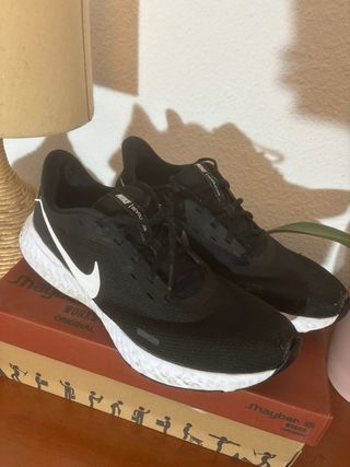 Zapatillas deportivas Nike en color negro, talla 39. Se encuentran en muy buen estado. Vendo zapatillas deportivas Nike originales en color negro con detalles blancos. Están en muy buen estado, poco uso, limpias y cuidadas. Son muy cómodas, ligeras y perfectas para: ✅ Caminar ✅ Hacer deporte ✅ Uso diario No tienen roturas ni defectos importantes, solo leves signos normales de uso en la suela (ver fotos).