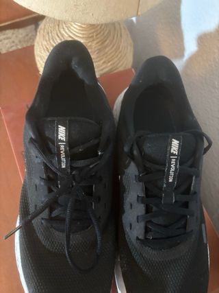 Zapatillas deportivas Nike Revolution 7. - Color negro y blanco. - Talla 43. - Suela Blanca - Cordones perfectos - Malla perfecta Se vende por haber quedado pequeña por crecimiento. Suela con toda la huella intacta. Está usado , ni tres meses, les falta limpieza, eso sí. Se venden lavadas.