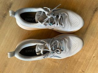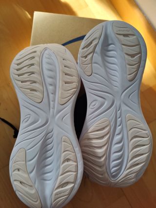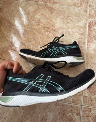 Vendo zapatillas de running ASICS Novablast 5, talla 42 (plantilla 26,5 cm). Compradas hace aproximadamente 6 meses. Las vendo únicamente porque he comprado un modelo más orientado a la velocidad. Son muy cómodas, con excelente amortiguación, y han sido usadas por una persona de peso ligero, por lo que la mediasuela está en muy buen estado. Recién lavados. Ideales para rodajes diarios, entrenamientos cómodos y largos.