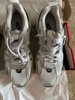 Zapatillas Nike V2K Run para mujer, en su caja original. - Modelo: W NIKE V2K RUN - Color: Summit White/Metallic Silver - Talla EUR: 40.5 - Talla UK: 6.5 - Talla BR: 39 - Fabricado en Vietnam