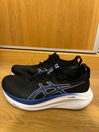 Zapatillas deportivas Asics Nimbus 27. Solo se han usado en dos ocasiones, así que están prácticamente nuevas. (Se venden porque no son compatibles con mi pisada).