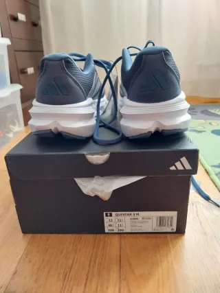 Zapatillas deportivas Adidas Questar 3 M. - Diseño en color azul con detalles blancos. - Parte superior de malla transpirable. - Cierre con cordones. - Suela de goma. - Logo de Adidas en la lengüeta y la plantilla.