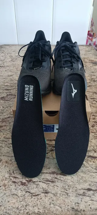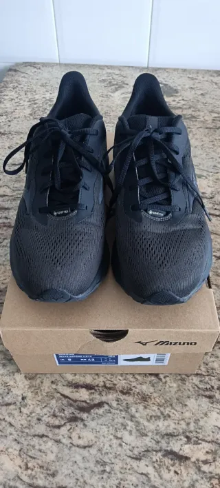 Zapatillas de running Mizuno Wave Serene 2 GTX en color negro, talla 42. - Tecnología Gore-Tex para impermeabilidad. - Diseño deportivo y moderno. - Suela con amortiguación Wave. Apenas usadas. Tienen dos meses. Plantillas nuevas, sin estrenar.