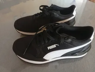 Zapatillas deportivas Puma para niño en talla 36. Combinan negro y blanco con un diseño moderno. Son estrenar, se envían con su caja. - Cierre con cordones. - Detalle de logo en el lateral. - Suela de goma.