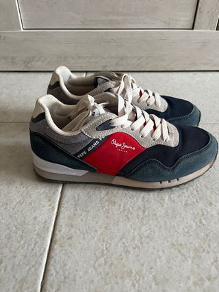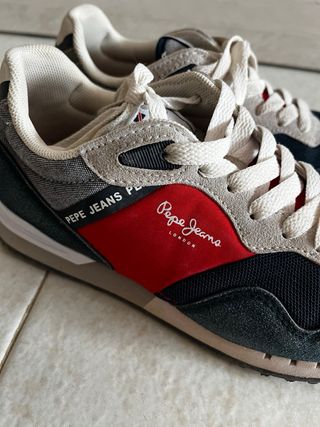 Zapatillas deportivas Pepe Jeans London modelo Brighton. Solo dos usos. Talla 36 - Diseño moderno y cómodo. - Combinación de colores azul y rojo. - Ideales para uso diario.