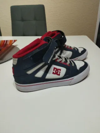 Zapatillas de skate para niño en talla 33. Perfectas para el día a día o para practicar skate. - Diseño de caña alta. - Cierre con cordones blancos. - Detalle de logo DC Shoes en los laterales y lengüeta. - Forro interior suave.