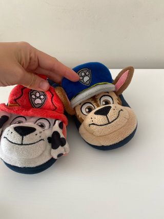 Adorable par de zapatillas de estar por casa con los personajes de Paw Patrol. - Diseño de Marshall (rojo) y Chase (azul). - Suaves y cómodas para el hogar.