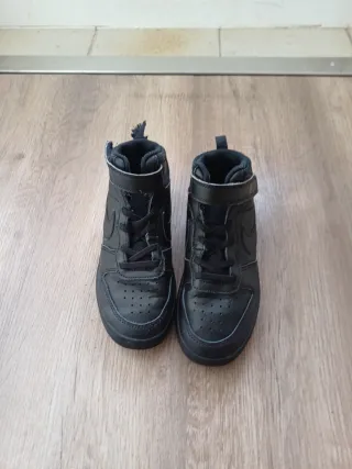 Zapatillas altas Nike para niño en color negro. Cierre con cordones y velcro. Talla 32 - Diseño deportivo. - Logo de Nike en el lateral. - Suela de goma.