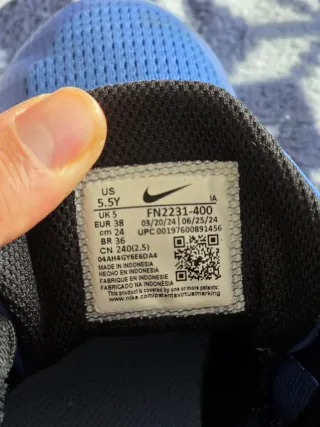 Zapatillas deportivas Nike para niño en color azul. - Talla 5.5Y (US) / 38 (EUR). - Fabricadas en Indonesia. - Modelo FN2231-400.