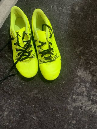 Vendo zapatillas de fútbol sala para niño, talla 40. Son de color amarillo y están en buen estado. - Ideales para jugar en pista cubierta. - Diseño deportivo y moderno. - Ligeras y cómodas.