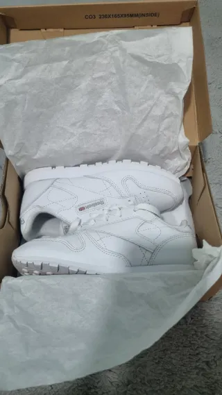 Zapatillas Reebok para niño en talla 30.5 en su caja original solo se ha usado dos veces y está en óptimas condiciones - Modelo Classic Leather. - Color blanco