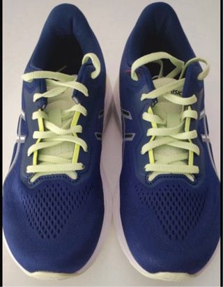 Zapatillas deportivas Asics para running. - Color azul con detalles en amarillo. - Diseño deportivo y ligero.