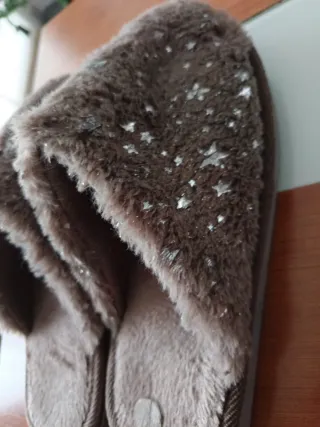 Comodísimas zapatillas con un diseño brillante. - Detalle de estrellas plateadas. - Acabado suave y mullido. Solo se ha utilizado 1 vez porque me van pequeñas.