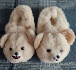 Bonitas zapatillas de casa con diseño de ositos. - Suaves y cómodas. - Detalle de orejas y cara de osito. - Color beige y marrón.