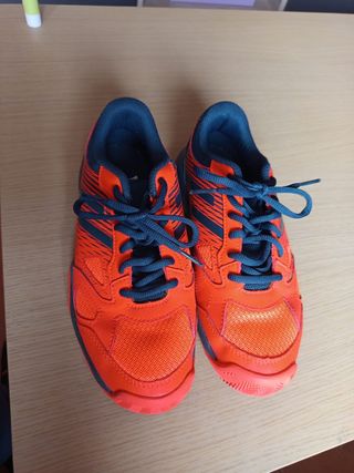 Lote de zapatillas deportivas para niño o niña. Sin uso prácticamente. - Zapatillas Nike negras talla 35,5.. - Zapatillas decathlon fútbol sala rojas talla 34.