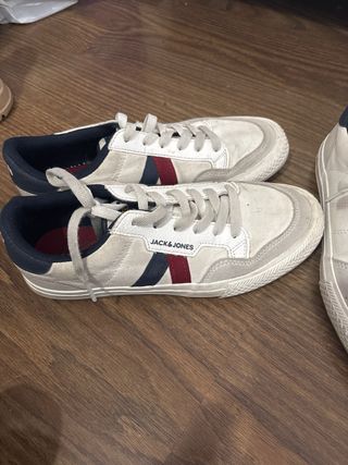 Conjunto de zapatillas deportivas para hombre o niño. - Diseño casual. - Cierre con cordones. - Combinación de colores blanco y azul. todos talla 39 JACK &JONEs cada pares por 14 euros están como nuevas solo necesitan limpiar un poco por fuera las azules por 4 euros