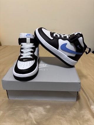 Zapatillas deportivas para niño de la marca Nike. Combinan detalles en blanco y azul. - Cierre de velcro y cordones. - Diseño de caña media. -talle 10c eur 27,5