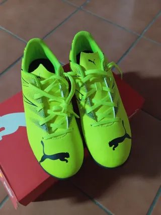 Vendo un par de zapatillas de fútbol para niño. Están en muy buen estado, apenas usadas. - Son de color negro con detalles verde lima. - Ideales para jugar al fútbol.