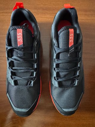 Zapatillas Adidas Terrex Agravic para trail running. Diseñadas para ofrecer rendimiento en terrenos difíciles. - Completamente nuevas. Sin estrenar por error de talla. - Parte superior de malla transpirable. - Suela de goma para un agarre óptimo. - Detalle de lengüeta y ribete en color naranja.