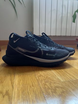 Zapatillas Nike Pegasus Trail 4 GORETEX en color negro. Solo estrenadas un día por la calle nada monte Tengo dos más y son las que uso - Modelo de trail running. - Tecnología GORE-TEX para impermeabilidad. - Suela con buen agarre. Compradas Nike oficial tengo ticket y captura web Totalmente negras