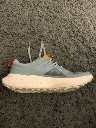 Zapatillas de trail running Nike en talla 44. Las vendo porque me las cambio cada X kilometros de carrera, he recorrido 95 kmts exactamente con ellas. - Diseño deportivo en tonos grises y azules. - Detalles en color naranja y rojo. - Suela con agarre para terrenos irregulares.