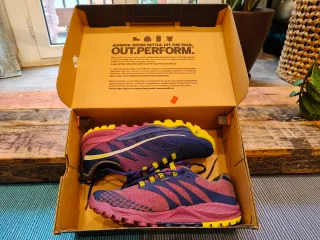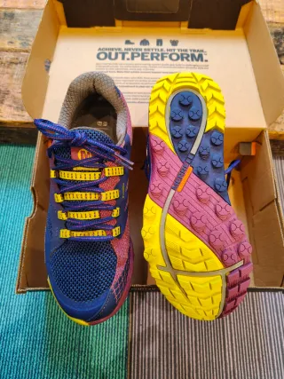 Zapatillas de Trail en montaña, originales, nuevas a estrenar con etiquetas! Suela Continental con buen agarre, súper cómodas y muy ligeras. Tecnología EnergyRods con varillas de fibra de carbono. De las mejores zapatillas para correr en montaña y terreno de nivel complejo. Precio en tienda 230€! Talla 42 EU Referencia JH61144