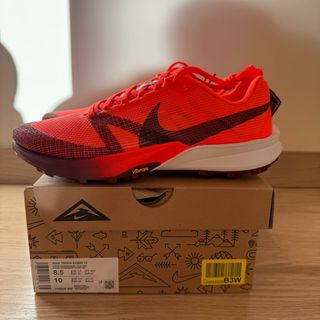 Zapatillas de trail running Nike Terra Kiger 10 en talla 42 (26,5 cm). Diseñadas para ofrecer rendimiento en terrenos difíciles. - Color naranja y rojo vibrante. - Suela con tecnología Vibram para un agarre óptimo. - Modelo FV3929 800.