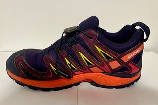 Prácticamente nuevas Zapatillas de trail running de la marca EVADICT en tonos morados y rojos. Diseñadas para ofrecer buen agarre y comodidad en terrenos irregulares. - Parte superior de malla transpirable. - Suela de goma con tacos para tracción. - Cierre de cordones.