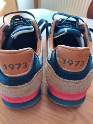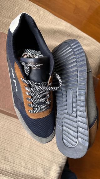Zapatillas Pepe Jeans talla 42 para hombre. Apenas usadas por error de talla, como nuevas, en excelente estado. - Combinación de colores azul y marrón. - Detalle del año 1973 en la parte trasera.