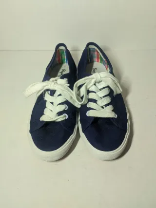 Zapatillas de lona con cordones. - Diseño de rayas azules en el lateral. - Suela de goma blanca. - Cierre de cordones blancos.