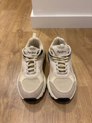 Zapatillas de la marca Pepe Jeans en tonos beige y blanco.