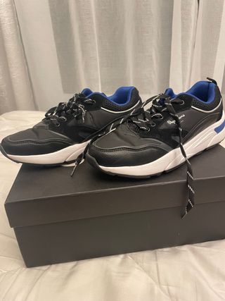 Zapatillas originales Pepe Jeans. Diseño moderno y versátil en negro con detalles azules y suela blanca, perfectas para combinar con cualquier look casual o deportivo. Muy cómodas, con interior acolchado y cordones bicolor. 📌 Talla: 38 📌 Colores: Negro, azul y blanco 📌 Envío disponible