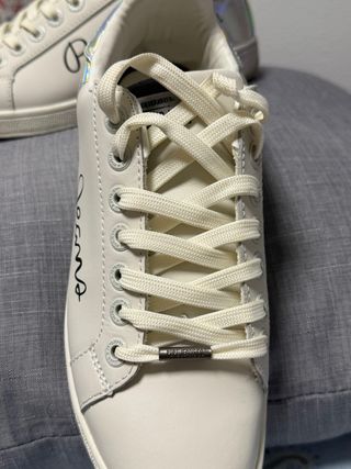 Zapatillas de mujer de la marca Pepe Jeans. Talla 38 - Diseño en color blanco con detalles dorados. - Cierre con cordones. - Detalle de estampado en el talón.