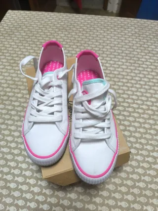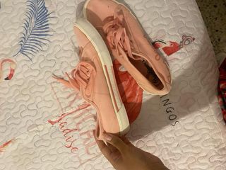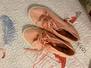 Zapatillas de lona en color rosa con cordones blancos. - Cierre de cordones. - Suela de goma blanca. - Detalle de logo en la plantilla. buen estado
