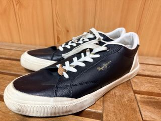 Zapatillas de piel de la marca Pepe Jeans, son un número 42. Solo han sido utilizadas 2 veces y con otras plantillas diferentes (unas ortopédicas). Fueron un regalo pero se equivocaron en la talla. Están prácticamente nuevas.