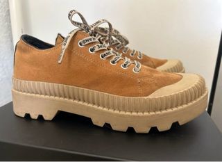 Zapatillas de ante con cordones. color camel - Diseño de caña baja. - Suela gruesa y dentada. - Cordones con logo de la marca.