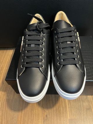 Zapatillas de cuero de Philipp Plein Lo-Top Iconic Leather. Fueron un regalo y se han usado durante 1 hora.. - Detalle de logo metálico en el lateral. - Cierre con cordones. - Suela de goma.