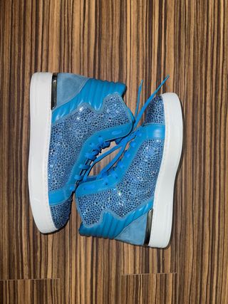 Zapatillas altas de Philipp Plein con un diseño llamativo y lleno de detalles. - Acabado brillante con incrustaciones. - Combinación de ante y piel. - Detalle metálico en el talón. - Cordones a juego. -Unisex.