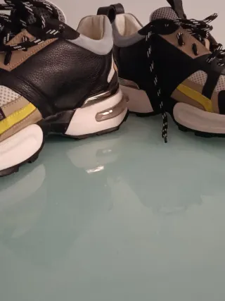 Zapatillas de diseño moderno y elegante. - Cierre con cordones. - Detalle metálico en la lengüeta. - Suela gruesa y robusta.