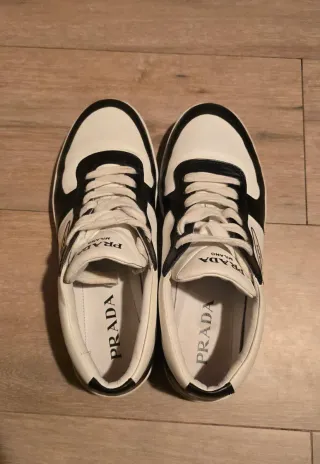 zapatillas prada de cuero de alta calidad nuevas, en su caja, con etiquetas, certificado y sin usar. son la talla 8 1/2 pero por el tallaje italiano de Prada son perfectas para la talla 43 (es la que yo uso) están totalmente nuevas, con etiqueta de devolución sin quitar