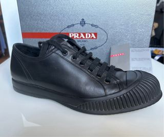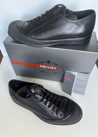 Zapatillas Prada talla 9 (ver tabla en web Prada = 43) en piel negra, muy poco uso, solo una rozadura que casi ni se ve en el zapato izquierdo ( ver foto 10) Tranquilidad, para evitar malos entendidos y garantizar la seguridad, filmo desde el embalaje del paquete hasta el lugar de envío, lo mismo hago a las recepciones de productos 😊 ⚠️ No se admiten devoluciones a menos que se pacte lo contrario con antelación. 📸 Tranquilidad, para evitar malos entendidos y garantizar la seguridad, filmo desde el embalaje del paquete hasta el lugar de envío, lo mismo hago a las recepciones de productos 😊