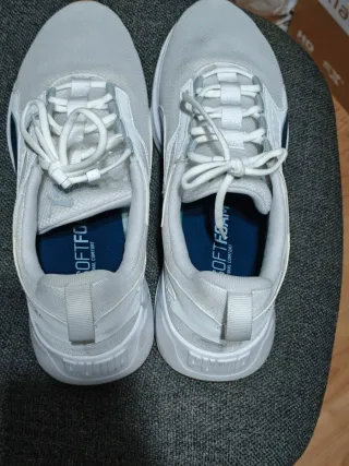 Zapatillas deportivas Puma en color blanco y azul. Usadas dos veces. - Cierre con cordones. - Suela con tecnología Softfoam para mayor comodidad. - Detalle de logo en la suela interior.