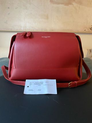 Bolso bandolera Balenciaga en color rojo, confeccionado en cuero. zara.h&m.bershka.pull&bear.mango.asos.levis.springfield.bimba.lola.pandora.guess.adidas.nike.fila.puma.vans.converse.martens.chanel.prada.armani.gucci.massimo.dutti.dior.louis.vuitton.supreme.hollister.vaqueros.camiseta.camisa.top.shorts.jersey.mono.marca.cazadora.vestido.falda.zapatillas.pantalon.jeans.botas.botines.collar.pulsera.gafas.moda.plataforma.denim.tacon.mochila.bolso.chaqueta.plumas.hermes.valentino.Versace.celine.loewe.chloe.bottega.veneta.kenzo.givenchy.fendi.louboutin.alexander.mcqueen.wang.balenciaga.furla.cacharel.ysl.Yves.sant.laurent.tommy.coach