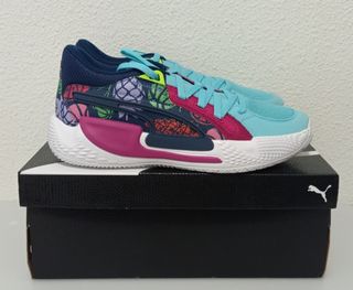 Zapatillas de baloncesto Puma con un diseño llamativo. - Combinación de colores morado y rosa. - Detalle de logo en el talón.